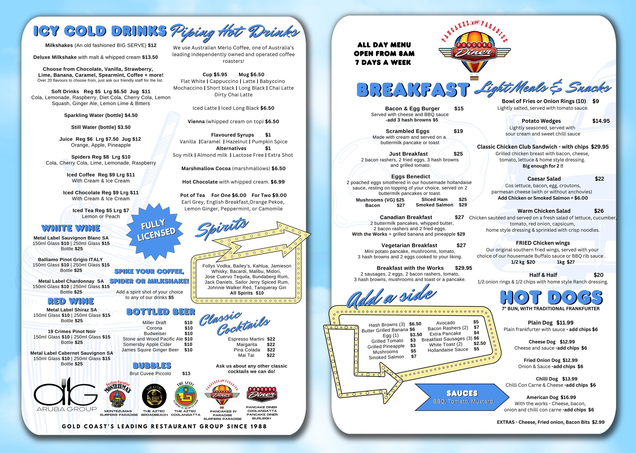 Our menu prices are subject to change, prices may be different when visiting our establishment.